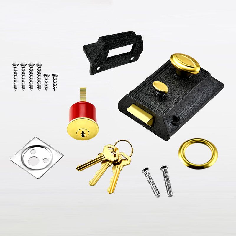 Introducing the black Night Latch Rim Lock a heavy duty door security lock that is perfect for any home or business. This single cylinder rim lock comes with a holdback button and two keys, as well as a satin finish that looks great and is easy to clean. The bolt door latch is made of brass with a hold-back function and has been tested for over 250,000 life cycles. It is also suitable for use with doors 1-3/8 inch to 2-3/8 inch thickness. Durable and reliable, this lock will give you the peace of mind you need to know your property is safe and secure.