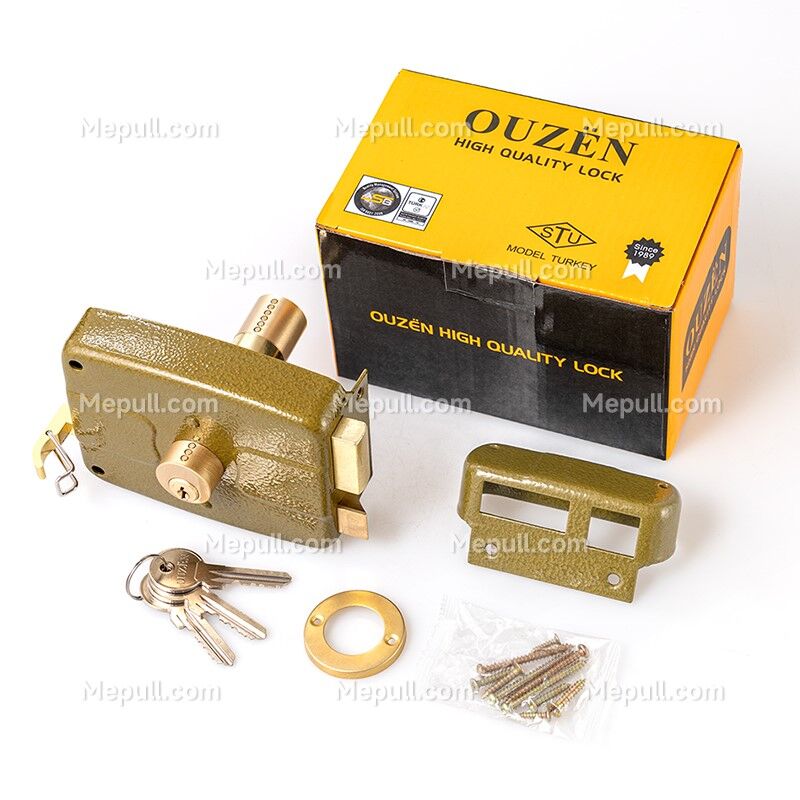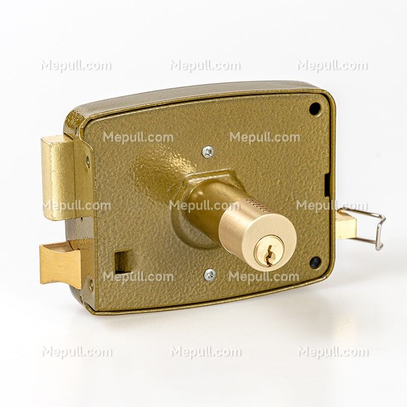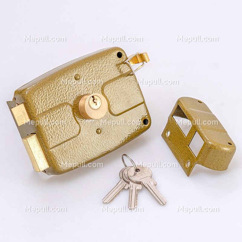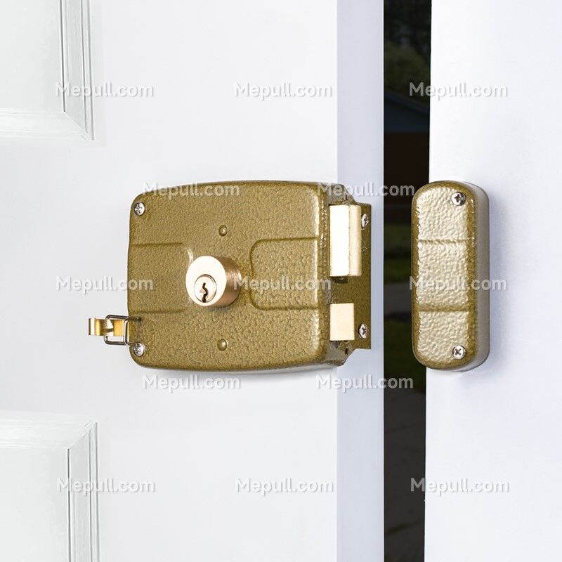 ·This heavy duty Rim Latch Door Hardware is made from durable steel and features a single cylinder rim design with two keys.